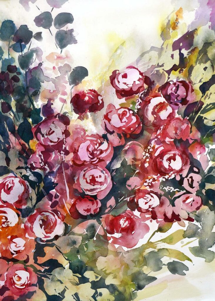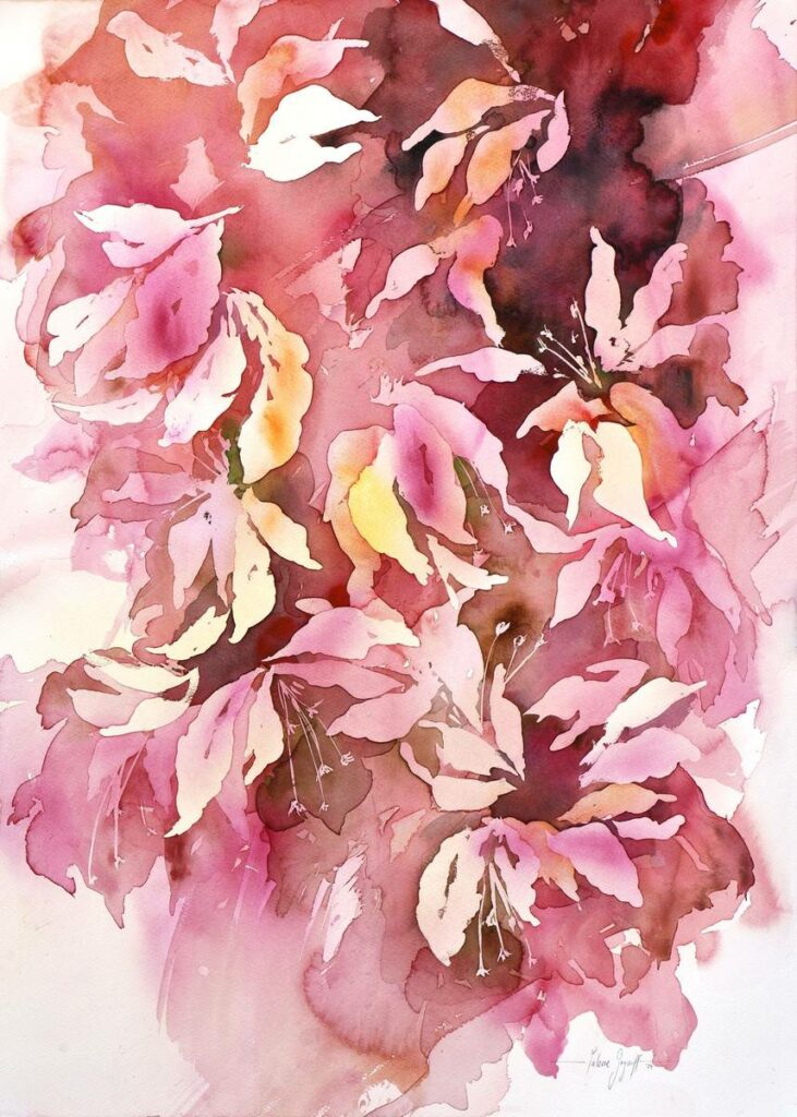 Autodidacte, j’ai développé une approche personnelle de l’aquarelle, moderne et de dynamique. Mon travail se caractérise par la superposition de couches, l’utilisation du travail en négatif et de teintes franches pour laisser jaillir la spontanéité du geste.
